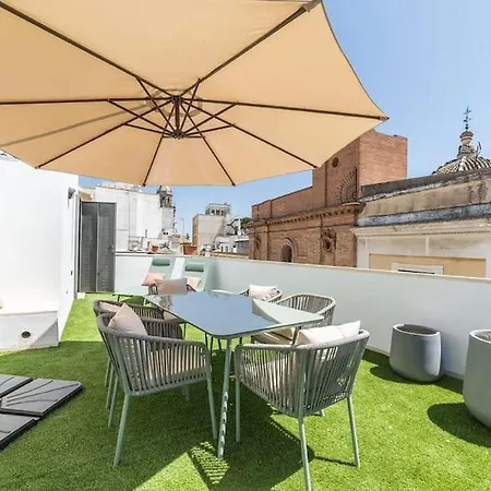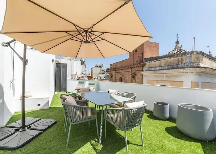 Die Ferienwohnung BS Brand New Triplex Private terrace downtown Parking Sevilla mit einer Fläche von 120 m² liegt im Herzen von Sevilla. Diese 3-Zimmer-Apartments bietet moderne Annehmlichkeiten wie WLAN und kostenlose Privatparkplätze für Autoreisende.
